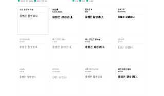 출처 : 배달의민족홈페이지 배달의민족홈페이지에서 기업의 글씨체에 대한 언급을 볼 수 있다. 현대카드 사례를 통해 글씨체 개발의 중요성을 강조하고 있다. 그래서일까.현재 한국의 대표적인 기업 서체의 하나로 배달의 민족이 있다. 최근에는 매우 많은 기업에서 서체를 개발·배포하고 있다. 그 수가 너무 많아서 정리하기 힘들 정도로 @_@… 다행히 아래 블로그의 두 글에서 한글날 배포된 무료 한글 글꼴을 깔끔하게 정리해 줬다.2017년 571주년 한글날에 배포된 무료 한글 폰트 7개 소개 | 많은 기업에서는 브랜드 강화 차원에서 기업체에 맞는 글씨체를 개발하여 사용하고 있다. 몇 년 전만 해도 글씨체도 기업의 자산이라고 해서 내부에서만 쓰는 경우가 많았다. 그러나 최근에는 기업에서 글씨체를 개발한 뒤 웹을 통해 무료로 이용자에게 나눠주는 바람직한 현상이 유행(?) 특히 한글날을 기념해 퀄리티와 완성도가 높은 글씨체가 많아 brunch.co.kr 2018년 572주년 한글날에 배포된 무료 한글 글꼴 8개를 소개 | 한글날 572주년을 맞은 2018년, 올해도 몇몇 기업이 한글 글꼴을 무료로 배포했다. 대학 내일 20대 연구소(이런 연구소가 있구나)의 조사 결과에 따르면 대학생의 절반(49%)은 무료 한글 글꼴을 배포하는 기업체나 단체, 공공기관 등을 보면 응원하고 싶다고 답했다. 아마 보고서나 프레젠테이션 디자인을 자주 해야 할 텐데 그럴 때마다 쉽게 사용하는 brunch.co.kr